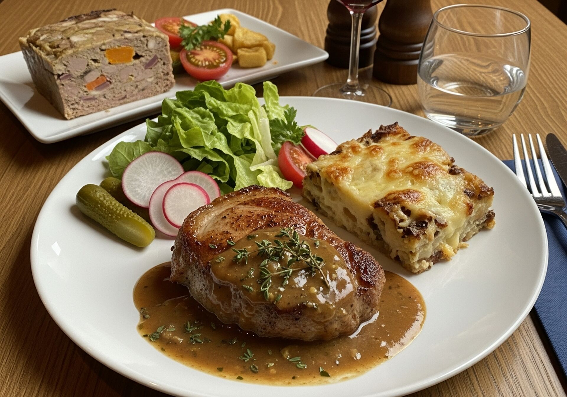 Le charme du repas fait maison : terrine campagnarde, filet mignon de porc, dessert gourmand. Ce menu typiquement alsacien allie plaisir et authenticité, idéal pour vos repas d’entreprise ou de famille à Sarre-Union.