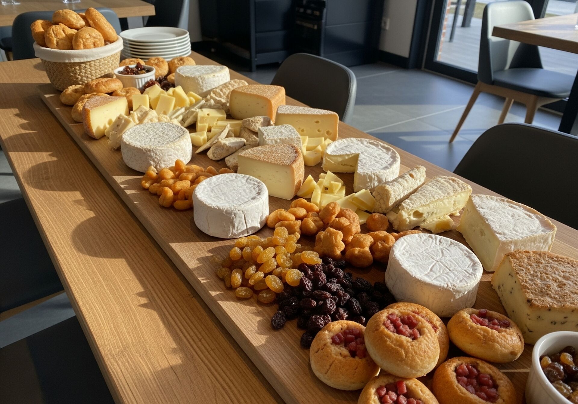 Le plateau découverte de La Toque Dorée vous invite à explorer dix variétés de fromages authentiques, servis avec pains spéciaux, beurre, raisin et mauricette. Une composition généreuse et élégante, parfaite pour vos repas de groupe. Le meilleur de la gastronomie alsacienne à Sarre-Union.